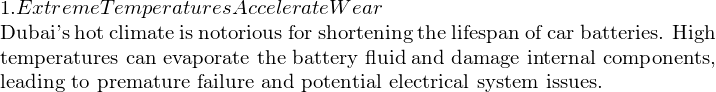*   Old Age: Most batteries last 2–3 years in Dubai’s climate.